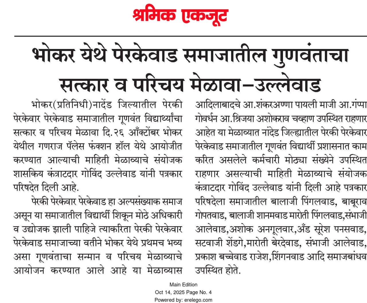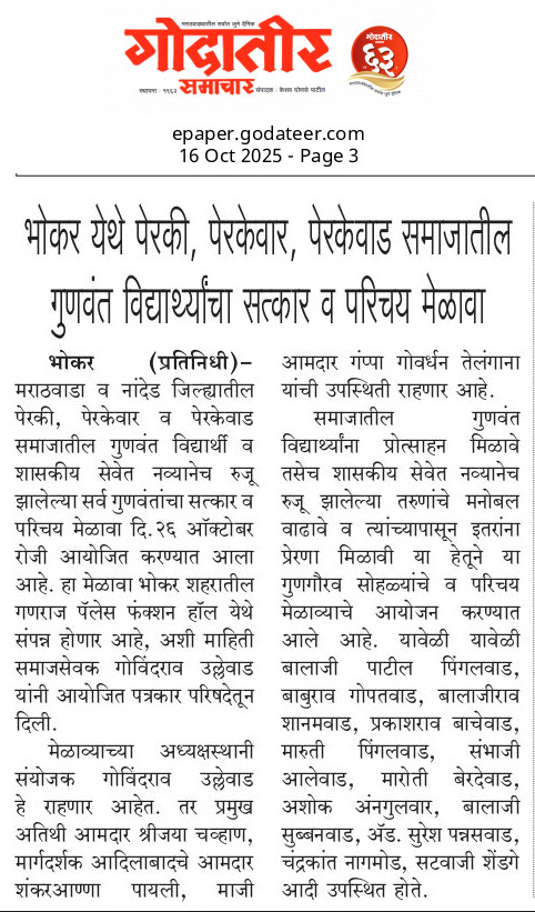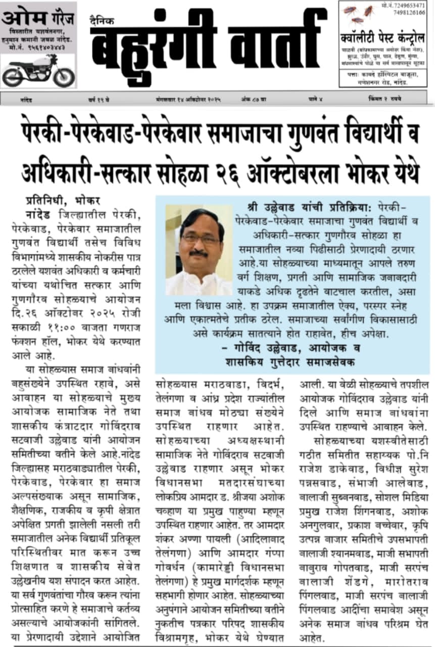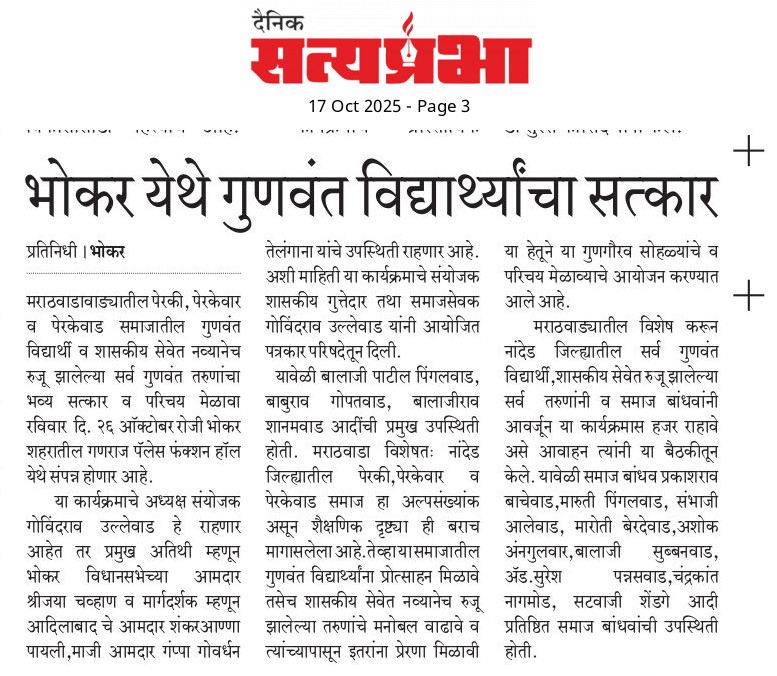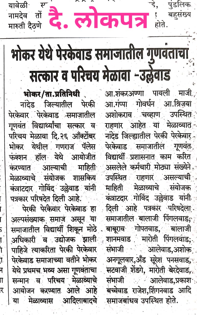 – Perki / Perkewar / Perkewad Samaj Sanghatan, Nanded” 26 October 2025 | Ganaraj Palace, Bhokar Road, Bhokar, Nanded District